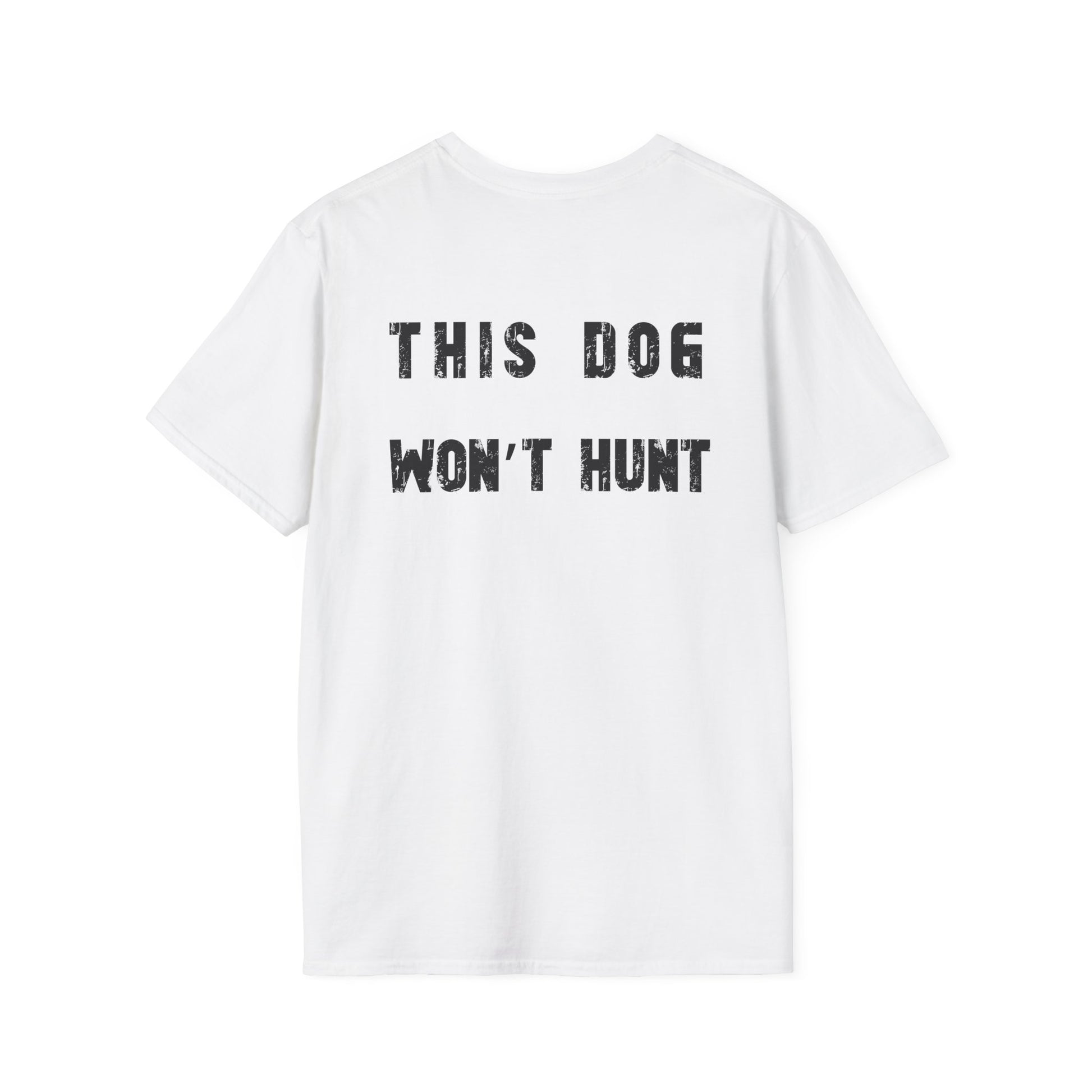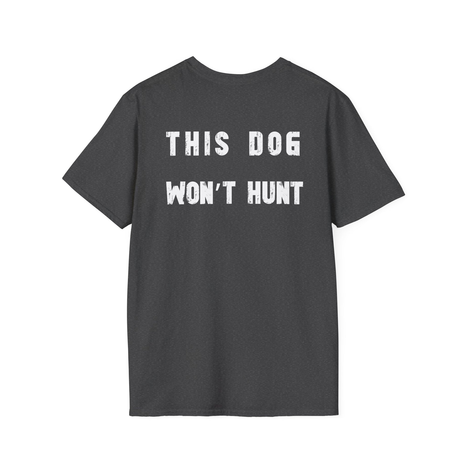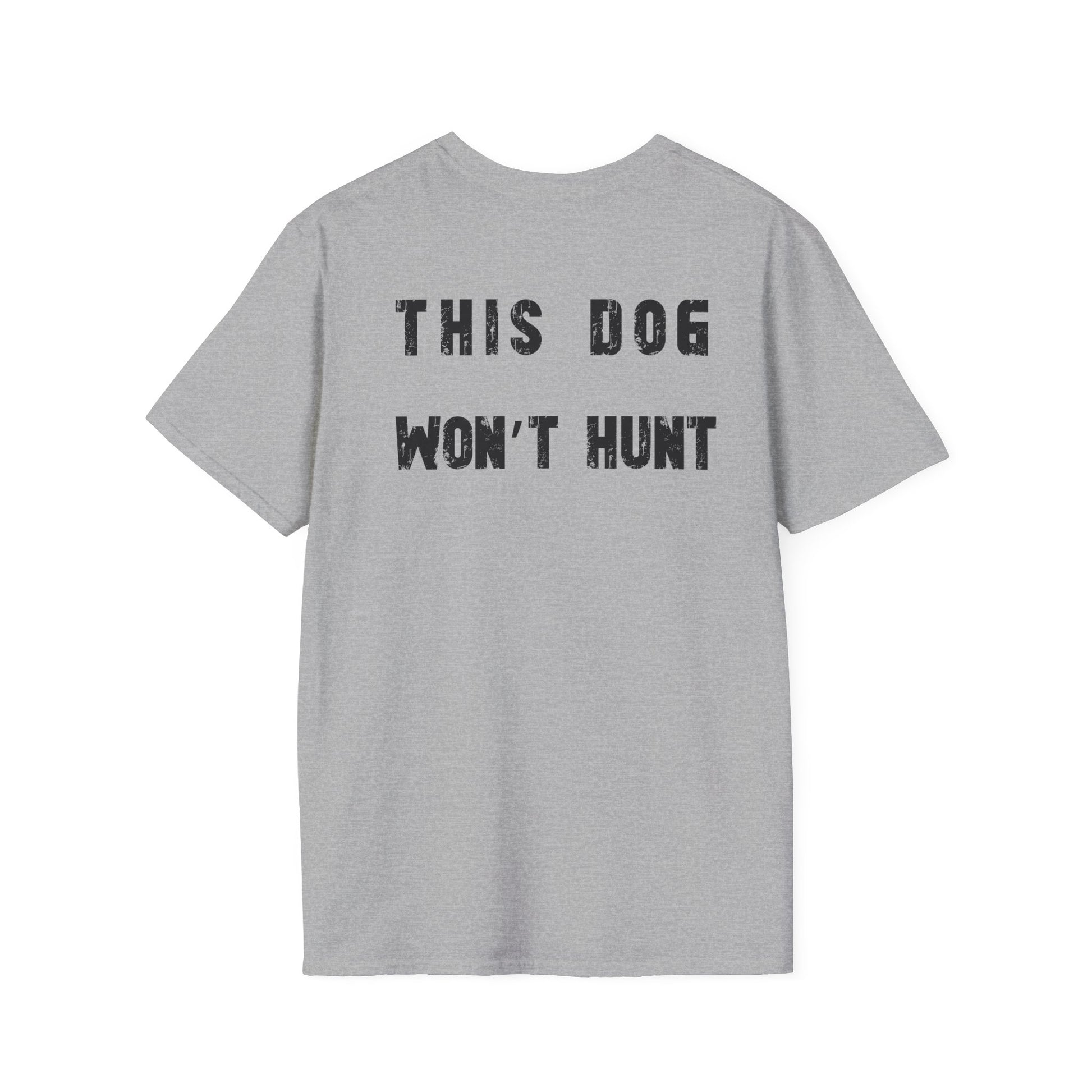 The front features a bold crowned German Shorthair Pointer portrait, while the back drives the joke home with the statement: This Dog Won’t Hunt. Funny, bold, and instantly relatable.