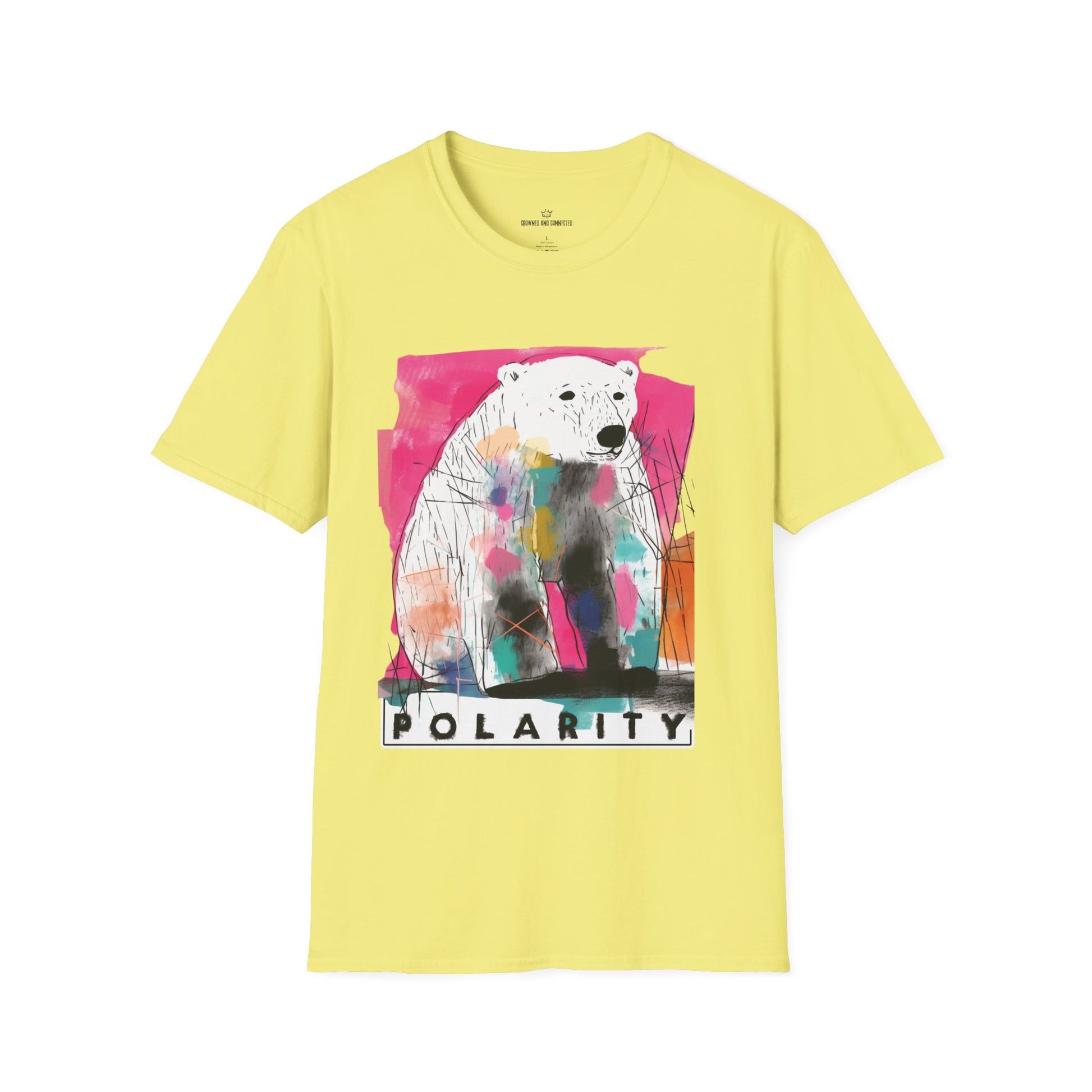 The Polarity tee brings together art, fashion, and meaning in one bold design. Featuring a striking polar bear outlined against vibrant splashes of color, this shirt explores the dualities of life—opposites that coexist, the beauty of extremes, and the urgent reminder of our fragile environment.